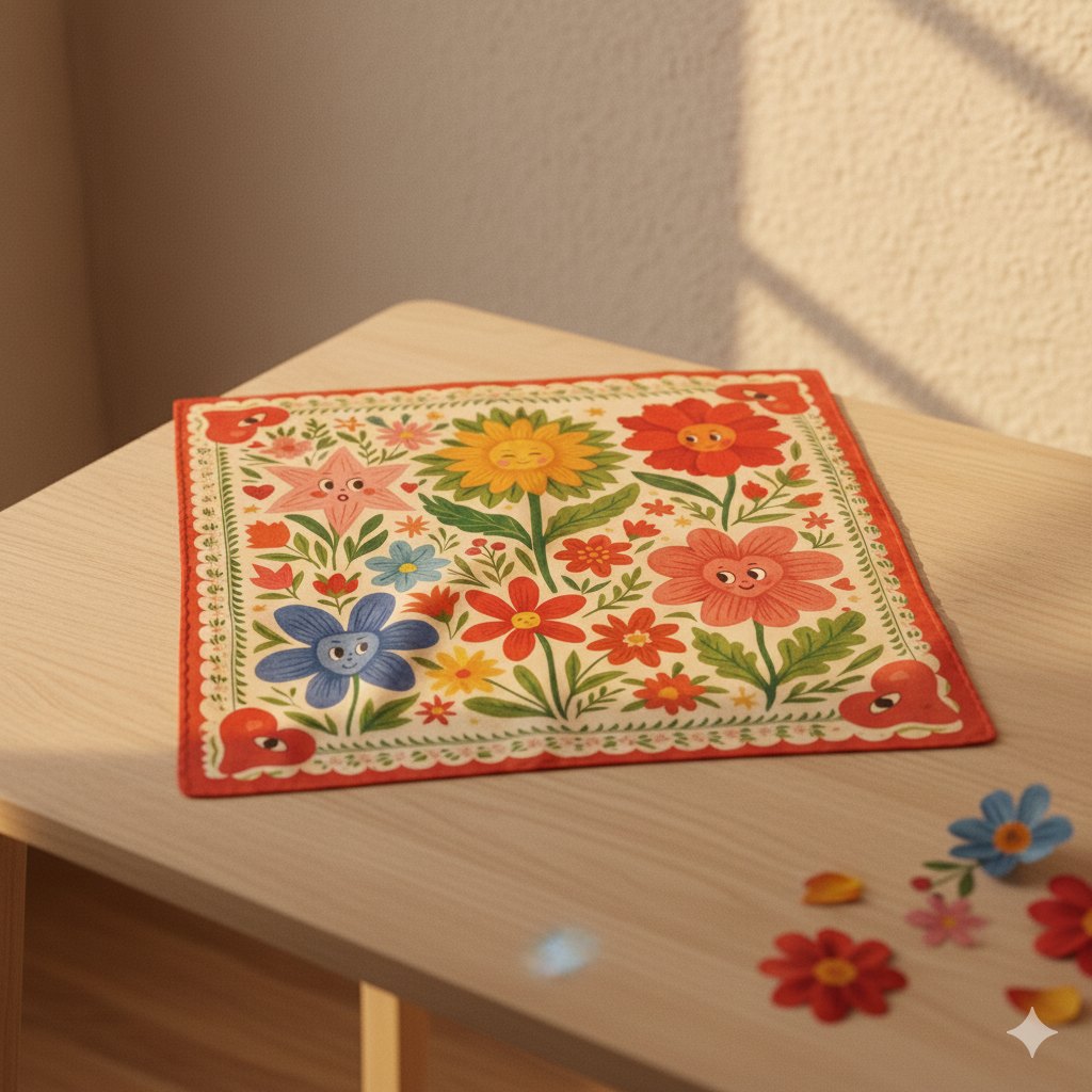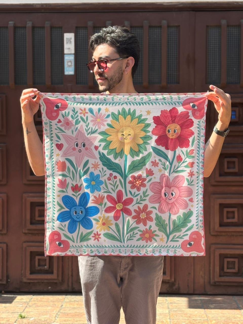 Su diseño retrata un jardín lleno de vida, donde cada flor representa conexión, diversidad y emoción. Una pieza ligera, versátil y atemporal, pensada para llevar más que color: lleva significado.