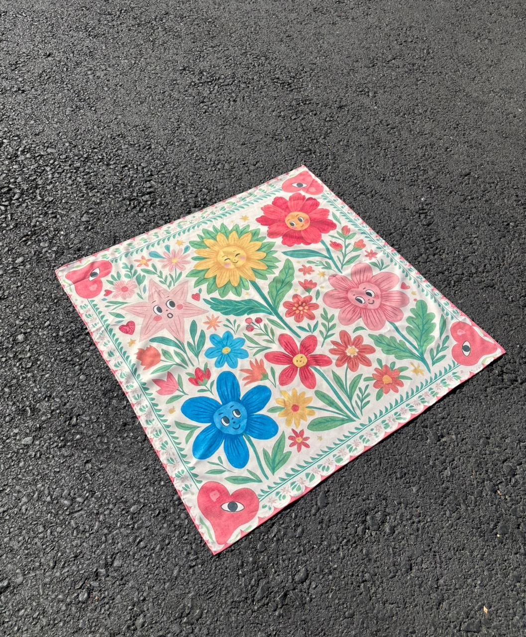 Inspirada en la cultura floral colombiana y en la Feria de las Flores de Medellín, esta pañoleta celebra la identidad, la memoria y la alegría que florecen cuando hacemos las cosas con voluntad.